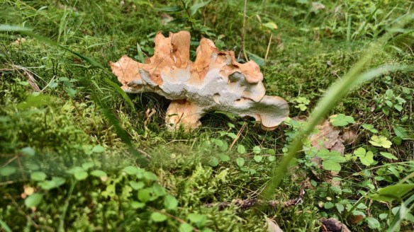 Bleke Hanenkammen (Cantharellus cibarius f. albus) in boswachterij Gieten (Foto Jeroen Onrust, 5 augustus 2025).